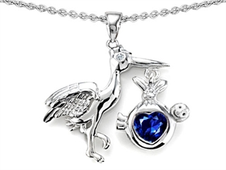 The beautiful Original Star K(tm) New Baby Stork Pendant with Heart Shape 8mm Created Sapphire, crafted in 925 Sterling Silver. This beautiful design is set with 1 stone prong set blue Heart Shape Created Sapphire. This style measures 24.00 mm wide, 28.00 mm long. Sapphire is September Birthstone: From the Latin 'sapphirus' meaning 'blue'. A symbol for truth and sincerity, it inspires spiritual enlightenment, health and inner peace. Free 18 inches chain included Designer: Star K - This beautiful design, is part of the exclusive Star K. jewelry collection. Star K. designs are copyrighted, so please be aware of cheap imitations selling online. Only original Star K. creations are made using the highest quality materials and craftsmanship, backed by an exclusive Lifetime Warranty. Warranty: - This item is covered by Finejewelers exclusive Silver Shield Lifetime Warranty. This exclusive lifetime coverage is offered ONLY by Finejewelers so please shop with confidence, our quality is guaranteed for life!