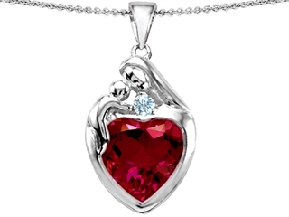 The alluring Original Star K(tm) Large Loving Mother With Child Family Pendant With 12mm Heart Created Ruby, crafted in .925 Sterling Silver. This amazing design is set with 1 stone bezel set red Heart Shape Created Ruby clean clarity, 1 stone bezel set colorless Round Cubic Zirconia. This style measures 15.00 mm wide, 28.00 mm long. Ruby is July Birthstone: From the Latin 'ruber' meaning 'red'. King of gems and a symbol of royalty, it is said to inspire love, passion, confidence and leadership. Free 18 inches chain included Designer: Star K - This beautiful design, is part of the exclusive Star K. jewelry collection. Star K. designs are copyrighted, so please be aware of cheap imitations selling online. Only original Star K. creations are made using the highest quality materials and craftsmanship, backed by an exclusive Lifetime Warranty. Warranty: - This item is covered by Finejewelers exclusive Silver Shield Lifetime Warranty. This exclusive lifetime coverage is offered ONLY by Finejewelers so please shop with confidence, our quality is guaranteed for life!