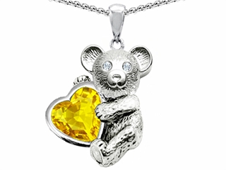 The alluring Original Star K(tm) Love Bear Hugging Birthstone of November 8mm Heart Shape Genuine Citrine, crafted in 925 Sterling Silver. This beautiful design is mounted with 1 stone prong set yellow-orange Heart Shape Citrine. This style measures 18.00 mm wide, 24.00 mm long. Citrine is November Birthstone: From the French 'citron' for 'lemon'. A symbol of success, is said to protect against sudden death and increase success and prosperity. Free 18 inches Sterling Silver Chain included Designer: Star K - This beautiful design, is part of the exclusive Star K. jewelry collection. Star K. designs are copyrighted, so please be aware of cheap imitations selling online. Only original Star K. creations are made using the highest quality materials and craftsmanship, backed by an exclusive Lifetime Warranty. Warranty: - This item is covered by Finejewelers exclusive Silver Shield Lifetime Warranty. This exclusive lifetime coverage is offered ONLY by Finejewelers so please shop with confidence, our quality is guaranteed for life!