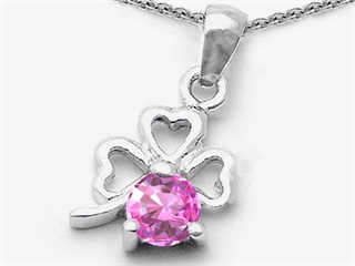 The attractive Celtic Love by Kelly Round Created Pink Sapphire Lucky Clover Pendant, crafted in .925 Sterling Silver. This amazing design is set with 1 stone prong set pink Round Created Pink Sapphire clean clarity. This style measures 11.00 mm wide, 20.00 mm long. Sapphire is September Birthstone: From the Latin 'sapphirus' meaning 'blue'. A symbol for truth and sincerity, it inspires spiritual enlightenment, health and inner peace. Warranty: - This item is covered by Finejewelers exclusive Silver Shield Lifetime Warranty. This exclusive lifetime coverage is offered ONLY by Finejewelers so please shop with confidence, our quality is guaranteed for life!