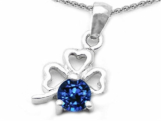 This dazzling Celtic Love by Kelly Round Created Sapphire Lucky Clover Pendant, crafted in .925 Sterling Silver. This attractive design is mounted with 1 stone prong set blue Round Created Sapphire. This style measures 11.00 mm wide, 20.00 mm long. Sapphire is September Birthstone: From the Latin 'sapphirus' meaning 'blue'. A symbol for truth and sincerity, it inspires spiritual enlightenment, health and inner peace. Free 18 inches Sterling Silver Chain included Warranty: - This item is covered by Finejewelers exclusive Silver Shield Lifetime Warranty. This exclusive lifetime coverage is offered ONLY by Finejewelers so please shop with confidence, our quality is guaranteed for life!