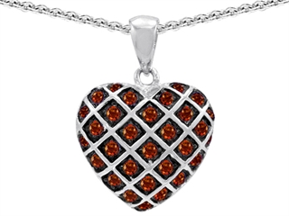 This beautiful Original Star K(tm) Genuine Garnet Puffed Heart Pendant, crafted in .925 Sterling Silver. This amazing design is set with 26 stones prong set red-brown Round Garnet. This style measures 17.00 mm wide, 23.00 mm long. Garnet is January Birthstone: From the Latin word 'granatus', the seeds of a pomegranate fruit. A symbol of fidelity, Garnet's powers include healing, strength, protection. Free 18 inches chain included Designer: Star K - This beautiful design, is part of the exclusive Star K. jewelry collection. Star K. designs are copyrighted, so please be aware of cheap imitations selling online. Only original Star K. creations are made using the highest quality materials and craftsmanship, backed by an exclusive Lifetime Warranty. Warranty: - This item is covered by Finejewelers exclusive Silver Shield Lifetime Warranty. This exclusive lifetime coverage is offered ONLY by Finejewelers so please shop with confidence, our quality is guaranteed for life!