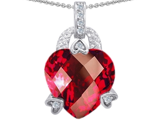 The attractive Original Star K(tm) Large 13mm Heart Shaped Created Ruby Designer Pendant, crafted in .925 Sterling Silver. This amazing design is mounted with 1 stone prong set red Heart Shape Created Ruby clean clarity, 8 stones prong set colorless Round Brilliant Cubic Zirconia. This product measures 14.00 mm wide, 22.00 mm long. Ruby is July Birthstone: From the Latin 'ruber' meaning 'red'. King of gems and a symbol of royalty, it is said to inspire love, passion, confidence and leadership. Free 18 inches chain included Designer: Star K - This beautiful design, is part of the exclusive Star K. jewelry collection. Star K. designs are copyrighted, so please be aware of cheap imitations selling online. Only original Star K. creations are made using the highest quality materials and craftsmanship, backed by an exclusive Lifetime Warranty. Warranty: - This item is covered by Finejewelers exclusive Silver Shield Lifetime Warranty. This exclusive lifetime coverage is offered ONLY by Finejewelers so please shop with confidence, our quality is guaranteed for life!