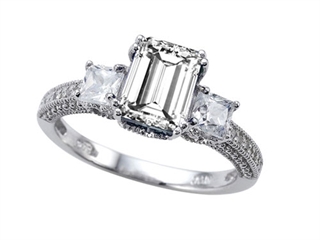 This delightful Zoe R(tm) Engagement Ring With 14 Genuine Diamonds And 8x6mm Emerald Cut Genuine White Topaz By, crafted in .925 Sterling Silver. This attractive design is mounted with 1 stone prong set colorless Emerald Cut White Topaz, 14 stones prong set Round Brilliant Diamond K color I3 clarity, 2 stones prong set colorless Square Cubic Zirconia. This product measures 14.00 mm wide, 8.00 mm long. Diamond is April Birthstone: From the Greek 'adamas' meaning 'invincible'. A symbol of enduring love, it is believed to bring the wearer luck and success. Warranty: - This item is covered by Finejewelers exclusive Silver Shield Lifetime Warranty. This exclusive lifetime coverage is offered ONLY by Finejewelers so please shop with confidence, our quality is guaranteed for life!