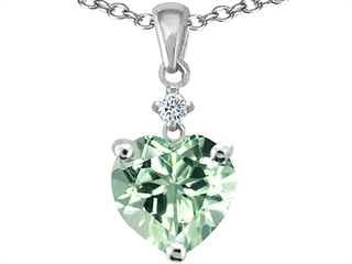 This impressing Original Star K(tm) Heart Shape 8mm Simulated Green Amethyst Pendant, crafted in .925 Sterling Silver. This amazing design is mounted with 1 stone prong set light green Heart Shape Simulated Green Amethyst, 1 stone prong set colorless Round Cubic Zirconia. This product measures 8.00 mm wide, 15.00 mm long. Amethyst is February Birthstone: From the Greek 'amethystos' meaning 'sober'. A symbol of trust, Amethyst is thought to protect against seduction and provide peace. Free 18 inches chain included Designer: Star K - This beautiful design, is part of the exclusive Star K. jewelry collection. Star K. designs are copyrighted, so please be aware of cheap imitations selling online. Only original Star K. creations are made using the highest quality materials and craftsmanship, backed by an exclusive Lifetime Warranty. Warranty: - This item is covered by Finejewelers exclusive Silver Shield Lifetime Warranty. This exclusive lifetime coverage is offered ONLY by Finejewelers so please shop with confidence, our quality is guaranteed for life!