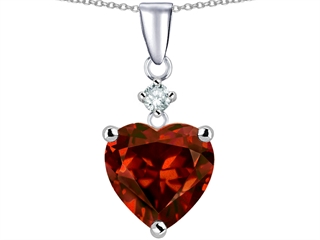 This impressive Original Star K(tm) Heart Shape 8mm Simulated Garnet Pendant, crafted in .925 Sterling Silver. This attractive design is mounted with 1 stone prong set red-brown Heart Shape Simulated Garnet eye clean clarity, 1 stone prong set colorless Round Cubic Zirconia clean clarity. This product measures 8.00 mm wide, 15.00 mm long. Garnet is January Birthstone: From the Latin word 'granatus', the seeds of a pomegranate fruit. A symbol of fidelity, Garnet's powers include healing, strength, protection. Free 18 inches chain included Designer: Star K - This beautiful design, is part of the exclusive Star K. jewelry collection. Star K. designs are copyrighted, so please be aware of cheap imitations selling online. Only original Star K. creations are made using the highest quality materials and craftsmanship, backed by an exclusive Lifetime Warranty. Warranty: - This item is covered by Finejewelers exclusive Silver Shield Lifetime Warranty. This exclusive lifetime coverage is offered ONLY by Finejewelers so please shop with confidence, our quality is guaranteed for life!