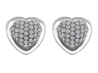 The impressing Original Star K(tm) Heart Shape Love Earrings with Cubic Zirconia, crafted in 925 Sterling Silver. This attractive design is mounted with 36 stones prong set colorless Round Cubic Zirconia. This design measures 10.00 mm wide, 10.00 mm long. Designer: Star K - This beautiful design, is part of the exclusive Star K. jewelry collection. Star K. designs are copyrighted, so please be aware of cheap imitations selling online. Only original Star K. creations are made using the highest quality materials and craftsmanship, backed by an exclusive Lifetime Warranty. Warranty: - This item is covered by Finejewelers exclusive Silver Shield Lifetime Warranty. This exclusive lifetime coverage is offered ONLY by Finejewelers so please shop with confidence, our quality is guaranteed for life!