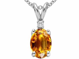 This attractive Tommaso Design(tm) Genuine Citrine and Diamond Pendant, available in 14 kt Yellow Gold and 14 kt White Gold. This amazing design is set with 1 stone 0.60 carats prong set medium to dark yellow-orange Oval Citrine, 1 stone 0.02 carats prong set Round Brilliant Diamond K color I3 clarity. This product measures 5.00 mm wide, 14.00 mm long. Citrine is November Birthstone: From the French 'citron' for 'lemon'. A symbol of success, is said to protect against sudden death and increase success and prosperity. Diamond is April Birthstone: From the Greek 'adamas' meaning 'invincible'. A symbol of enduring love, it is believed to bring the wearer luck and success. Free 18 inches chain included Designer: Tommaso design Studio - This classic design, is made by the renowned Tommaso Design Studio. Tommaso creations are copyrighted, so please be aware of cheap imitations selling online. Only original Tommaso designs are made using the highest quality materials and craftsmanship, backed by an exclusive Lifetime Warranty. Warranty: - This item is covered by Finejewelers exclusive Silver Shield Lifetime Warranty. This exclusive lifetime coverage is offered ONLY by Finejewelers so please shop with confidence, our quality is guaranteed for life!. Metal Available: 14 kt Yellow Gold, 14 kt White Gold.