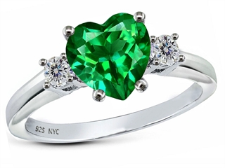 This dazzling Original Star K(tm) 8mm Heart Shape Simulated Emerald Engagement Ring, crafted in .925 Sterling Silver. This attractive design is set with 1 stone prong set green Heart Shape Simulated Emerald, 2 stones prong set colorless Round Cubic Zirconia. This style measures 8.00 mm wide. Emerald is May Birthstone: From the French 'esmeralde' meaning 'green gem'. A symbol of immortality, it is said to improve memory, wisdom and intuition. Designer: Star K - This beautiful design, is part of the exclusive Star K. jewelry collection. Star K. designs are copyrighted, so please be aware of cheap imitations selling online. Only original Star K. creations are made using the highest quality materials and craftsmanship, backed by an exclusive Lifetime Warranty. Warranty: - This item is covered by Finejewelers exclusive Silver Shield Lifetime Warranty. This exclusive lifetime coverage is offered ONLY by Finejewelers so please shop with confidence, our quality is guaranteed for life!