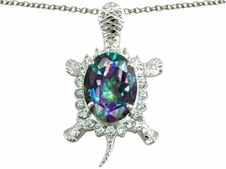 This impressing Original Star K(tm) Good Luck Turtle Pendant With Oval Rainbow Mystic Topaz, crafted in 925 Sterling Silver. This beautiful design is mounted with 1 stone prong set multicolor Oval Mystic Topaz eye clean clarity, 20 stones prong set colorless Round Cubic Zirconia clean clarity. This style measures 22.00 mm wide, 45.00 mm long. Free 18 inches chain included Designer: Star K - This beautiful design, is part of the exclusive Star K. jewelry collection. Star K. designs are copyrighted, so please be aware of cheap imitations selling online. Only original Star K. creations are made using the highest quality materials and craftsmanship, backed by an exclusive Lifetime Warranty. Warranty: - This item is covered by Finejewelers exclusive Silver Shield Lifetime Warranty. This exclusive lifetime coverage is offered ONLY by Finejewelers so please shop with confidence, our quality is guaranteed for life!