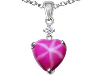 This stunning Original Star K(tm) Heart Shaped Created Star Ruby Pendant, crafted in .925 Sterling Silver. This beautiful design is mounted with 1 stone prong set pink Heart Shape Created Star Ruby clean clarity, 1 stone prong set colorless Round Cubic Zirconia. This product measures 8.00 mm wide, 15.00 mm long. Ruby is July Birthstone: From the Latin 'ruber' meaning 'red'. King of gems and a symbol of royalty, it is said to inspire love, passion, confidence and leadership. Free 18 inches chain included Designer: Star K - This beautiful design, is part of the exclusive Star K. jewelry collection. Star K. designs are copyrighted, so please be aware of cheap imitations selling online. Only original Star K. creations are made using the highest quality materials and craftsmanship, backed by an exclusive Lifetime Warranty. Warranty: - This item is covered by Finejewelers exclusive Silver Shield Lifetime Warranty. This exclusive lifetime coverage is offered ONLY by Finejewelers so please shop with confidence, our quality is guaranteed for life!