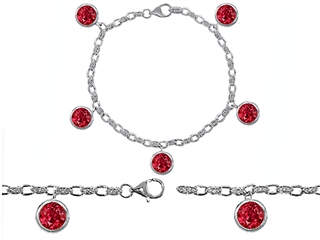 The amazing Original Star K(tm) High End Tennis Charm Bracelet With 5pcs 7mm Round Created Ruby, crafted in .925 Sterling Silver. This attractive design is set with 5 stones bezel set red Round Created Ruby, 79 stones prong set colorless Round Cubic Zirconia. This style measures 0.25 Inches wide, 7.50 Inches long. Ruby is July Birthstone: From the Latin 'ruber' meaning 'red'. King of gems and a symbol of royalty, it is said to inspire love, passion, confidence and leadership. Designer: Star K - This beautiful design, is part of the exclusive Star K. jewelry collection. Star K. designs are copyrighted, so please be aware of cheap imitations selling online. Only original Star K. creations are made using the highest quality materials and craftsmanship, backed by an exclusive Lifetime Warranty. Warranty: - This item is covered by Finejewelers exclusive Silver Shield Lifetime Warranty. This exclusive lifetime coverage is offered ONLY by Finejewelers so please shop with confidence, our quality is guaranteed for life!