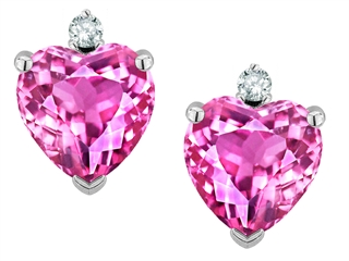 The impressive Tommaso Design(tm) Heart Shape 6 mm Created Pink Sapphire and Genuine Diamonds Earring Studs, available in 14 kt Yellow Gold and 14 kt White Gold. This beautiful design is set with 2 stones prong set pink Heart Shape Created Pink Sapphire, 2 stones prong set Round Brilliant Diamond K color I3 clarity. This design measures 6.00 mm wide, 8.00 mm long. Sapphire is September Birthstone: From the Latin 'sapphirus' meaning 'blue'. A symbol for truth and sincerity, it inspires spiritual enlightenment, health and inner peace. Diamond is April Birthstone: From the Greek 'adamas' meaning 'invincible'. A symbol of enduring love, it is believed to bring the wearer luck and success. Designer: Tommaso design Studio - This classic design, is made by the renowned Tommaso Design Studio. Tommaso creations are copyrighted, so please be aware of cheap imitations selling online. Only original Tommaso designs are made using the highest quality materials and craftsmanship, backed by an exclusive Lifetime Warranty. Warranty: - This item is covered by Finejewelers exclusive Silver Shield Lifetime Warranty. This exclusive lifetime coverage is offered ONLY by Finejewelers so please shop with confidence, our quality is guaranteed for life!. Metal Available: 14 kt Yellow Gold, 14 kt White Gold.