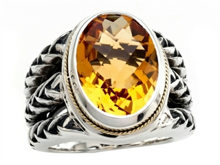 The impressive Balissima By Effy Collection Sterling Silver and 18k Yellow Gold Citrine Ring, crafted in 925 Silver and 18k Yellow Gold. This amazing design is mounted with 1 stone bezel set medium to dark yellow-orange Oval Citrine eye clean clarity Citrine is November Birthstone: From the French 'citron' for 'lemon'. A symbol of success, is said to protect against sudden death and increase success and prosperity. Warranty: - This item is covered by Finejewelers exclusive Silver Shield Lifetime Warranty. This exclusive lifetime coverage is offered ONLY by Finejewelers so please shop with confidence, our quality is guaranteed for life!