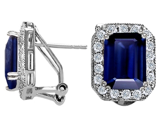 The attractive Original Star K(tm) Created Emerald Cut Sapphire Earrings, crafted in .925 Sterling Silver. This amazing design is set with 2 stones prong set blue Emerald Cut Created Sapphire clean clarity, 36 stones prong set colorless Round Cubic Zirconia. This style measures 0.25 Inches wide, 0.25 Inches long. Sapphire is September Birthstone: From the Latin 'sapphirus' meaning 'blue'. A symbol for truth and sincerity, it inspires spiritual enlightenment, health and inner peace. Designer: Star K - This beautiful design, is part of the exclusive Star K. jewelry collection. Star K. designs are copyrighted, so please be aware of cheap imitations selling online. Only original Star K. creations are made using the highest quality materials and craftsmanship, backed by an exclusive Lifetime Warranty. Warranty: - This item is covered by Finejewelers exclusive Silver Shield Lifetime Warranty. This exclusive lifetime coverage is offered ONLY by Finejewelers so please shop with confidence, our quality is guaranteed for life!