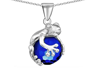 This delightful Original Star K(tm) Frog Pendant With 10mm Simulated Sapphire Ball, crafted in .925 Sterling Silver. This attractive design is mounted with 1 stone prong set blue Ball Created Sapphire clean clarity. This product measures 13.00 mm wide, 21.00 mm long. Sapphire is September Birthstone: From the Latin 'sapphirus' meaning 'blue'. A symbol for truth and sincerity, it inspires spiritual enlightenment, health and inner peace. Free 18 inches chain included Designer: Star K - This beautiful design, is part of the exclusive Star K. jewelry collection. Star K. designs are copyrighted, so please be aware of cheap imitations selling online. Only original Star K. creations are made using the highest quality materials and craftsmanship, backed by an exclusive Lifetime Warranty. Warranty: - This item is covered by Finejewelers exclusive Silver Shield Lifetime Warranty. This exclusive lifetime coverage is offered ONLY by Finejewelers so please shop with confidence, our quality is guaranteed for life!