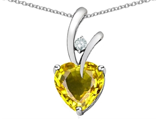 The impressive Original Star K(tm) Heart Shape 8mm Simulated Citrine Pendant, crafted in 925 Sterling Silver. This amazing design is mounted with 1 stone prong set medium to light yellow Heart Shape Simulated Citrine clean clarity, 1 stone prong set colorless Round Cubic Zirconia. This design measures 8.00 mm wide, 18.00 mm long. Citrine is November Birthstone: From the French 'citron' for 'lemon'. A symbol of success, is said to protect against sudden death and increase success and prosperity. Free 18 inches chain included Designer: Star K - This beautiful design, is part of the exclusive Star K. jewelry collection. Star K. designs are copyrighted, so please be aware of cheap imitations selling online. Only original Star K. creations are made using the highest quality materials and craftsmanship, backed by an exclusive Lifetime Warranty. Warranty: - This item is covered by Finejewelers exclusive Silver Shield Lifetime Warranty. This exclusive lifetime coverage is offered ONLY by Finejewelers so please shop with confidence, our quality is guaranteed for life!