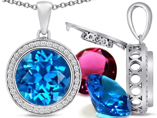 The stunning Switch-It Gems(tm) Round 12mm Simulated Blue Topaz Pendant with 12 Interchangeable Simulated Birthstones, crafted in 925 Sterling Silver. This amazing design is set with 36 stones channel set colorless Round Brilliant Cubic Zirconia. This product measures 16.00 mm wide, 26.00 mm long. Blue Topaz is December Birthstone: From the Greek 'topazos' meaning 'to seek'. Topaz is said to enhance spiritual potential, intelligence, creativity and wealth. Free 18 inches chain included 12 Round 12mm Simulated Birthstone Included Switch-It Gem(tm) Designs are protected by US Copyright and Patent Laws Warranty: - This item is covered by Finejewelers exclusive Silver Shield Lifetime Warranty. This exclusive lifetime coverage is offered ONLY by Finejewelers so please shop with confidence, our quality is guaranteed for life!