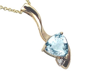 The stunning Tommaso Design(tm) Genuine Aquamarine Pendant, available in 14 kt Yellow Gold and 14 kt White Gold. This beautiful design is set with 1 stone 1.00 carats faint blue Triangle Aquamarine eye clean clarity, 0.01 carats Round Diamond K color I3 clarity Aquamarine is March Birthstone: From the latin `aqua` and `mare` meaning 'sea water'. Aquamarine is said to provide everlasting youth, courage, and happiness. Diamond is April Birthstone: From the Greek 'adamas' meaning 'invincible'. A symbol of enduring love, it is believed to bring the wearer luck and success. Free 18 inches chain included Designer: Tommaso design Studio - This classic design, is made by the renowned Tommaso Design Studio. Tommaso creations are copyrighted, so please be aware of cheap imitations selling online. Only original Tommaso designs are made using the highest quality materials and craftsmanship, backed by an exclusive Lifetime Warranty. Warranty: - This item is covered by Finejewelers exclusive Silver Shield Lifetime Warranty. This exclusive lifetime coverage is offered ONLY by Finejewelers so please shop with confidence, our quality is guaranteed for life!. Metal Available: 14 kt Yellow Gold, 14 kt White Gold.