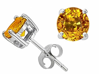 The impressive Tommaso Design(tm) Large GENUINE Grade 6.5mm Yellow Sapphire Earring Studs, crafted in 14 kt White Gold. This beautiful design is set with 2 stones 2.75 carats prong set medium to dark yellow-orange Round Yellow Sapphire eye clean to slightly included clarity. This style measures 6.50 mm wide, 6.50 mm long. Sapphire is September Birthstone: From the Latin 'sapphirus' meaning 'blue'. A symbol for truth and sincerity, it inspires spiritual enlightenment, health and inner peace. Designer: Tommaso design Studio - This classic design, is made by the renowned Tommaso Design Studio. Tommaso creations are copyrighted, so please be aware of cheap imitations selling online. Only original Tommaso designs are made using the highest quality materials and craftsmanship, backed by an exclusive Lifetime Warranty. Warranty: - This item is covered by Finejewelers exclusive Silver Shield Lifetime Warranty. This exclusive lifetime coverage is offered ONLY by Finejewelers so please shop with confidence, our quality is guaranteed for life!