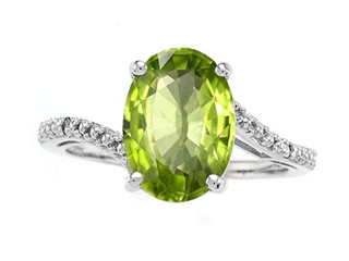This stunning Tommaso Design(tm) Oval 10x8mm Genuine Peridot and Diamond Ring, available in 14 kt Yellow Gold and 14 kt White Gold. This attractive design is set with 1 stone 2.00 carats prong set green-yellow Oval Peridot, 2 stones 0.01 carats prong set Round Brilliant Diamond K color I3 clarity. This product measures 8.00 mm wide, 10.00 mm long. Peridot is August Birthstone: From the Greek 'Peridona' for 'giving plenty'. A symbol of the sun, Peridot is thought to bring good luck, peace, protection and success. Diamond is April Birthstone: From the Greek 'adamas' meaning 'invincible'. A symbol of enduring love, it is believed to bring the wearer luck and success. Designer: Tommaso design Studio - This classic design, is made by the renowned Tommaso Design Studio. Tommaso creations are copyrighted, so please be aware of cheap imitations selling online. Only original Tommaso designs are made using the highest quality materials and craftsmanship, backed by an exclusive Lifetime Warranty. Warranty: - This item is covered by Finejewelers exclusive Silver Shield Lifetime Warranty. This exclusive lifetime coverage is offered ONLY by Finejewelers so please shop with confidence, our quality is guaranteed for life!. Metal Available: 14 kt Yellow Gold, 14 kt White Gold.