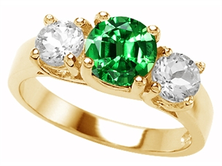 This alluring Original Star K(tm) 925 Simulated Round Emerald Engagement Ring, crafted in 14k Yellow Gold Plated Silver. This amazing design is mounted with 1 stone prong set green Round Simulated Emerald, 2 stones prong set colorless Round Cubic Zirconia. This product measures 17.00 mm wide. Emerald is May Birthstone: From the French 'esmeralde' meaning 'green gem'. A symbol of immortality, it is said to improve memory, wisdom and intuition. Designer: Star K - This beautiful design, is part of the exclusive Star K. jewelry collection. Star K. designs are copyrighted, so please be aware of cheap imitations selling online. Only original Star K. creations are made using the highest quality materials and craftsmanship, backed by an exclusive Lifetime Warranty. Warranty: - This item is covered by Finejewelers exclusive Silver Shield Lifetime Warranty. This exclusive lifetime coverage is offered ONLY by Finejewelers so please shop with confidence, our quality is guaranteed for life!