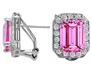 The beautiful Original Star K(tm) Created Emerald Cut Pink Sapphire Earrings, crafted in .925 Sterling Silver. This attractive design is mounted with 2 stones prong set pink Emerald Cut Created Pink Sapphire clean clarity, 36 stones prong set colorless Round Cubic Zirconia. This style measures 0.25 Inches wide, 0.25 Inches long. Sapphire is September Birthstone: From the Latin 'sapphirus' meaning 'blue'. A symbol for truth and sincerity, it inspires spiritual enlightenment, health and inner peace. Designer: Star K - This beautiful design, is part of the exclusive Star K. jewelry collection. Star K. designs are copyrighted, so please be aware of cheap imitations selling online. Only original Star K. creations are made using the highest quality materials and craftsmanship, backed by an exclusive Lifetime Warranty. Warranty: - This item is covered by Finejewelers exclusive Silver Shield Lifetime Warranty. This exclusive lifetime coverage is offered ONLY by Finejewelers so please shop with confidence, our quality is guaranteed for life!