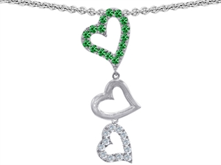 The dazzling Original Star K(tm) Dangling Heart with Round Simulated Emerald Pendant, crafted in 925 Sterling Silver. This amazing design is mounted with 16 stones prong set green Round Simulated Emerald, 13 stones prong set colorless Round Brilliant Cubic Zirconia. This product measures 14.00 mm wide, 45.00 mm long. Emerald is May Birthstone: From the French 'esmeralde' meaning 'green gem'. A symbol of immortality, it is said to improve memory, wisdom and intuition. Free 18 inches Sterling Silver Chain included Designer: Star K - This beautiful design, is part of the exclusive Star K. jewelry collection. Star K. designs are copyrighted, so please be aware of cheap imitations selling online. Only original Star K. creations are made using the highest quality materials and craftsmanship, backed by an exclusive Lifetime Warranty. Warranty: - This item is covered by Finejewelers exclusive Silver Shield Lifetime Warranty. This exclusive lifetime coverage is offered ONLY by Finejewelers so please shop with confidence, our quality is guaranteed for life!