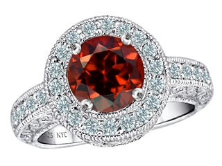This attractive Original Star K(tm) Genuine 7mm Round Garnet Engagement Ring, crafted in .925 Sterling Silver. This amazing design is mounted with 1 stone prong set red-brown Round Garnet, 44 stones prong set colorless Round Cubic Zirconia. This style measures 9.00 mm wide. Garnet is January Birthstone: From the Latin word 'granatus', the seeds of a pomegranate fruit. A symbol of fidelity, Garnet's powers include healing, strength, protection. Designer: Star K - This beautiful design, is part of the exclusive Star K. jewelry collection. Star K. designs are copyrighted, so please be aware of cheap imitations selling online. Only original Star K. creations are made using the highest quality materials and craftsmanship, backed by an exclusive Lifetime Warranty. Warranty: - This item is covered by Finejewelers exclusive Silver Shield Lifetime Warranty. This exclusive lifetime coverage is offered ONLY by Finejewelers so please shop with confidence, our quality is guaranteed for life!