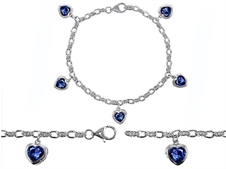 This alluring Original Star K(tm) High End Tennis Charm Bracelet With 5pcs 7mm Heart Shape Created Sapphire, crafted in .925 Sterling Silver. This amazing design is mounted with 5 stones bezel set blue Heart Shape Created Sapphire, 79 stones prong set colorless Round Cubic Zirconia. This design measures 0.25 Inches wide, 7.50 Inches long. Sapphire is September Birthstone: From the Latin 'sapphirus' meaning 'blue'. A symbol for truth and sincerity, it inspires spiritual enlightenment, health and inner peace. Designer: Star K - This beautiful design, is part of the exclusive Star K. jewelry collection. Star K. designs are copyrighted, so please be aware of cheap imitations selling online. Only original Star K. creations are made using the highest quality materials and craftsmanship, backed by an exclusive Lifetime Warranty. Warranty: - This item is covered by Finejewelers exclusive Silver Shield Lifetime Warranty. This exclusive lifetime coverage is offered ONLY by Finejewelers so please shop with confidence, our quality is guaranteed for life!