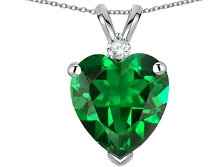 This impressing Tommaso Design(tm) Heart Shape Simulated Emerald And Genuine Diamond Pendant, available in 14 kt White Gold and 14 kt Yellow Gold. This beautiful design is mounted with 1 stone prong set green Heart Shape Simulated emerald, 1 stone prong set Round Brilliant Diamond K color I3 clarity. This product measures 8.00 mm wide, 15.00 mm long. Emerald is May Birthstone: From the French 'esmeralde' meaning 'green gem'. A symbol of immortality, it is said to improve memory, wisdom and intuition. Diamond is April Birthstone: From the Greek 'adamas' meaning 'invincible'. A symbol of enduring love, it is believed to bring the wearer luck and success. Free 18 inches chain included Designer: Tommaso design Studio - This classic design, is made by the renowned Tommaso Design Studio. Tommaso creations are copyrighted, so please be aware of cheap imitations selling online. Only original Tommaso designs are made using the highest quality materials and craftsmanship, backed by an exclusive Lifetime Warranty. Warranty: - This item is covered by Finejewelers exclusive Silver Shield Lifetime Warranty. This exclusive lifetime coverage is offered ONLY by Finejewelers so please shop with confidence, our quality is guaranteed for life!. Metal Available: 14 kt White Gold, 14 kt Yellow Gold.