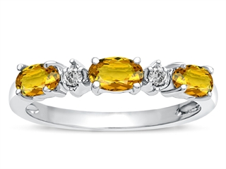 This attractive Tommaso Design(tm) Oval 5x3mm Genuine 3 Stone Citrine and Diamond Ring, available in 14 kt White Gold and 14 kt Yellow Gold. This amazing design is set with 3 stones 0.45 carats prong set medium to dark yellow-orange Oval Citrine, 2 stones 0.04 carats prong set Round Brilliant Diamond K color I3 clarity. This product measures 18.00 mm wide. Citrine is November Birthstone: From the French 'citron' for 'lemon'. A symbol of success, is said to protect against sudden death and increase success and prosperity. Diamond is April Birthstone: From the Greek 'adamas' meaning 'invincible'. A symbol of enduring love, it is believed to bring the wearer luck and success. Made in USA Designer: Tommaso design Studio - This classic design, is made by the renowned Tommaso Design Studio. Tommaso creations are copyrighted, so please be aware of cheap imitations selling online. Only original Tommaso designs are made using the highest quality materials and craftsmanship, backed by an exclusive Lifetime Warranty. Warranty: - This item is covered by Finejewelers exclusive Silver Shield Lifetime Warranty. This exclusive lifetime coverage is offered ONLY by Finejewelers so please shop with confidence, our quality is guaranteed for life!. Metal Available: 14 kt White Gold, 14 kt Yellow Gold.
