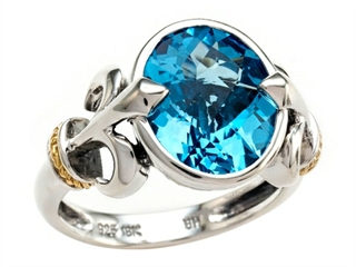 The beautiful Balissima By Effy Collection Sterling Silver and 18k Yellow Gold Blue Topaz Ring, crafted in 925 Silver and 18k Yellow Gold. This beautiful design is set with 1 stone bezel set blue Oval Blue Topaz eye clean clarity Blue Topaz is December Birthstone: From the Greek 'topazos' meaning 'to seek'. Topaz is said to enhance spiritual potential, intelligence, creativity and wealth. Warranty: - This item is covered by Finejewelers exclusive Silver Shield Lifetime Warranty. This exclusive lifetime coverage is offered ONLY by Finejewelers so please shop with confidence, our quality is guaranteed for life!