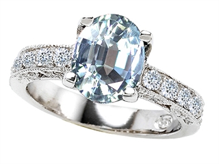 The dazzling Original Star K(tm) 925 Genuine Oval Aquamarine Ring, crafted in .925 Sterling Silver. This beautiful design is set with 1 stone 1.60 carats prong set faint blue Oval Aquamarine clean clarity, 14 stones 0.25 carats prong set colorless Oval Cubic Zirconia. This style measures 9.00 mm wide. Aquamarine is March Birthstone: From the latin `aqua` and `mare` meaning 'sea water'. Aquamarine is said to provide everlasting youth, courage, and happiness. Designer: Star K - This beautiful design, is part of the exclusive Star K. jewelry collection. Star K. designs are copyrighted, so please be aware of cheap imitations selling online. Only original Star K. creations are made using the highest quality materials and craftsmanship, backed by an exclusive Lifetime Warranty. Warranty: - This item is covered by Finejewelers exclusive Silver Shield Lifetime Warranty. This exclusive lifetime coverage is offered ONLY by Finejewelers so please shop with confidence, our quality is guaranteed for life!