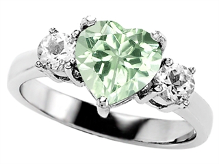 The alluring Original Star K(tm) Genuine 7mm Heart Shape Green Amethyst Engagement Ring, crafted in .925 Sterling Silver. This amazing design is set with 1 stone prong set light green Heart Shape Green Amethyst, 2 stones prong set colorless Round Cubic Zirconia. This style measures 8.00 mm wide. Amethyst is February Birthstone: From the Greek 'amethystos' meaning 'sober'. A symbol of trust, Amethyst is thought to protect against seduction and provide peace. Designer: Star K - This beautiful design, is part of the exclusive Star K. jewelry collection. Star K. designs are copyrighted, so please be aware of cheap imitations selling online. Only original Star K. creations are made using the highest quality materials and craftsmanship, backed by an exclusive Lifetime Warranty. Warranty: - This item is covered by Finejewelers exclusive Silver Shield Lifetime Warranty. This exclusive lifetime coverage is offered ONLY by Finejewelers so please shop with confidence, our quality is guaranteed for life!