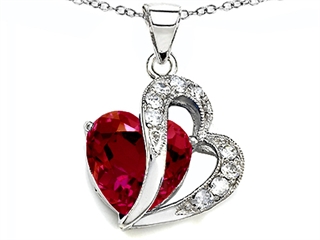 This impressing Original Star K(tm) Heart Shape 12mm Created Ruby Pendant, crafted in 925 Sterling Silver. This beautiful design is set with 1 stone prong set red Heart Shape Created Ruby, 9 stones prong set colorless Round Cubic Zirconia. This style measures 19.00 mm wide, 26.00 mm long. Ruby is July Birthstone: From the Latin 'ruber' meaning 'red'. King of gems and a symbol of royalty, it is said to inspire love, passion, confidence and leadership. Free 18 inches chain included Designer: Star K - This beautiful design, is part of the exclusive Star K. jewelry collection. Star K. designs are copyrighted, so please be aware of cheap imitations selling online. Only original Star K. creations are made using the highest quality materials and craftsmanship, backed by an exclusive Lifetime Warranty. Warranty: - This item is covered by Finejewelers exclusive Silver Shield Lifetime Warranty. This exclusive lifetime coverage is offered ONLY by Finejewelers so please shop with confidence, our quality is guaranteed for life!