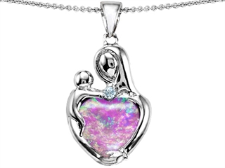 This amazing Original Star K(tm) Large Loving Mother With Child Pendant With 12mm Heart Shape Created Pink Opal, crafted in 925 Sterling Silver. This attractive design is set with 1 stone bezel set pink iridesent Heart Shape Created Pink Opal, 1 stone bezel set colorless Round Cubic Zirconia. This style measures 15.00 mm wide, 26.00 mm long. Opal is October Birthstone: From the Greek 'opallios', meaning 'colour change'. A symbol of hope and faithfulness, it inspires true love and brings confidence. Free 18 inches chain included Designer: Star K - This beautiful design, is part of the exclusive Star K. jewelry collection. Star K. designs are copyrighted, so please be aware of cheap imitations selling online. Only original Star K. creations are made using the highest quality materials and craftsmanship, backed by an exclusive Lifetime Warranty. Warranty: - This item is covered by Finejewelers exclusive Silver Shield Lifetime Warranty. This exclusive lifetime coverage is offered ONLY by Finejewelers so please shop with confidence, our quality is guaranteed for life!