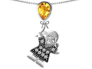 The attractive Original Star K(tm) Little Girl Holding a Balloon Mother Birthstone Genuine Citrine Pendant, crafted in .925 Sterling Silver. This attractive design is mounted with 1 stone prong set medium to dark yellow-orange Pear Shape Citrine. This product measures 18.00 mm wide, 37.00 mm long. Citrine is November Birthstone: From the French 'citron' for 'lemon'. A symbol of success, is said to protect against sudden death and increase success and prosperity. Free 18 inches Sterling Silver Chain included Designer: Star K - This beautiful design, is part of the exclusive Star K. jewelry collection. Star K. designs are copyrighted, so please be aware of cheap imitations selling online. Only original Star K. creations are made using the highest quality materials and craftsmanship, backed by an exclusive Lifetime Warranty. Warranty: - This item is covered by Finejewelers exclusive Silver Shield Lifetime Warranty. This exclusive lifetime coverage is offered ONLY by Finejewelers so please shop with confidence, our quality is guaranteed for life!