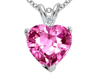 This stunning Tommaso Design(tm) 8mm Heart Created Pink Sapphire and Genuine Diamond Pend, available in 14 kt Yellow Gold and 14 kt White Gold. This amazing design is set with 1 stone prong set pink Heart Shape Created Pink Sapphire clean clarity, 1 stone prong set Round Brilliant Diamond K color I3 clarity. This style measures 8.00 mm wide, 13.00 mm long. Sapphire is September Birthstone: From the Latin 'sapphirus' meaning 'blue'. A symbol for truth and sincerity, it inspires spiritual enlightenment, health and inner peace. Diamond is April Birthstone: From the Greek 'adamas' meaning 'invincible'. A symbol of enduring love, it is believed to bring the wearer luck and success. Free 18 inches chain included Designer: Tommaso design Studio - This classic design, is made by the renowned Tommaso Design Studio. Tommaso creations are copyrighted, so please be aware of cheap imitations selling online. Only original Tommaso designs are made using the highest quality materials and craftsmanship, backed by an exclusive Lifetime Warranty. Warranty: - This item is covered by Finejewelers exclusive Silver Shield Lifetime Warranty. This exclusive lifetime coverage is offered ONLY by Finejewelers so please shop with confidence, our quality is guaranteed for life!. Metal Available: 14 kt Yellow Gold, 14 kt White Gold.