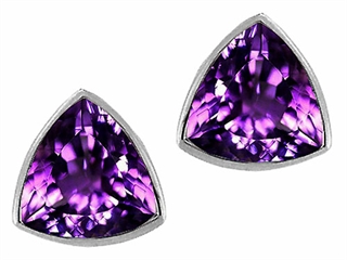This impressive Tommaso Design(tm) Genuine Trillion Amethyst Earring Studs, available in 14 kt Yellow Gold and 14 kt White Gold. This beautiful design is mounted with 1.50 carats bezel set medium to dark violet Triangle Amethyst eye clean clarity Amethyst is February Birthstone: From the Greek 'amethystos' meaning 'sober'. A symbol of trust, Amethyst is thought to protect against seduction and provide peace. Designer: Tommaso design Studio - This classic design, is made by the renowned Tommaso Design Studio. Tommaso creations are copyrighted, so please be aware of cheap imitations selling online. Only original Tommaso designs are made using the highest quality materials and craftsmanship, backed by an exclusive Lifetime Warranty. Warranty: - This item is covered by Finejewelers exclusive Silver Shield Lifetime Warranty. This exclusive lifetime coverage is offered ONLY by Finejewelers so please shop with confidence, our quality is guaranteed for life!. Metal Available: 14 kt Yellow Gold, 14 kt White Gold.