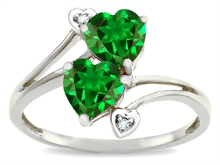 The impressive Tommaso Design(tm) Heart Shape 6mm Simulated Emerald And Diamond Bypass Ring, available in 14 kt Yellow Gold and 14 kt White Gold. This beautiful design is mounted with 2 stones prong set green Heart Shape Simulated emerald, 2 stones prong set Round Brilliant Diamond K color I3 clarity. This product measures 8.00 mm wide, 14.00 mm long. Emerald is May Birthstone: From the French 'esmeralde' meaning 'green gem'. A symbol of immortality, it is said to improve memory, wisdom and intuition. Diamond is April Birthstone: From the Greek 'adamas' meaning 'invincible'. A symbol of enduring love, it is believed to bring the wearer luck and success. Designer: Tommaso design Studio - This classic design, is made by the renowned Tommaso Design Studio. Tommaso creations are copyrighted, so please be aware of cheap imitations selling online. Only original Tommaso designs are made using the highest quality materials and craftsmanship, backed by an exclusive Lifetime Warranty. Warranty: - This item is covered by Finejewelers exclusive Silver Shield Lifetime Warranty. This exclusive lifetime coverage is offered ONLY by Finejewelers so please shop with confidence, our quality is guaranteed for life!. Metal Available: 14 kt Yellow Gold, 14 kt White Gold.