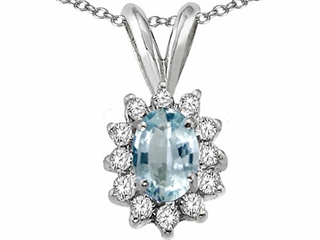 This beautiful Tommaso Design(tm) Oval 7x5mm Genuine Aquamarine and Diamond Pendant, available in 14 kt White Gold and 14 kt Yellow Gold. This attractive design is mounted with 1 stone 0.60 carats prong set faint blue Oval Aquamarine, 12 stones 0.24 carats prong set Round Brilliant Diamond K color I3 clarity. This design measures 10.00 mm wide, 15.00 mm long. Aquamarine is March Birthstone: From the latin `aqua` and `mare` meaning 'sea water'. Aquamarine is said to provide everlasting youth, courage, and happiness. Diamond is April Birthstone: From the Greek 'adamas' meaning 'invincible'. A symbol of enduring love, it is believed to bring the wearer luck and success. Free 18 inches chain included Designer: Tommaso design Studio - This classic design, is made by the renowned Tommaso Design Studio. Tommaso creations are copyrighted, so please be aware of cheap imitations selling online. Only original Tommaso designs are made using the highest quality materials and craftsmanship, backed by an exclusive Lifetime Warranty. Warranty: - This item is covered by Finejewelers exclusive Silver Shield Lifetime Warranty. This exclusive lifetime coverage is offered ONLY by Finejewelers so please shop with confidence, our quality is guaranteed for life!. Metal Available: 14 kt White Gold, 14 kt Yellow Gold.