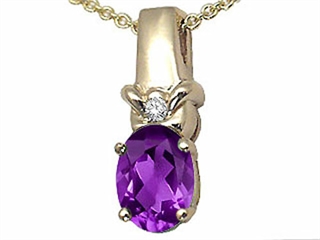 The alluring Tommaso Design(tm) Oval 8x6 mm Genuine Amethyst and Diamond Pendant, available in 14 kt Yellow Gold and 14 kt White Gold. This attractive design is set with 1 stone 0.95 carats prong set medium to dark violet Oval Amethyst, 1 stone 0.02 carats prong set Round Brilliant Diamond K color I3 clarity. This product measures 6.00 mm wide, 18.00 mm long. Amethyst is February Birthstone: From the Greek 'amethystos' meaning 'sober'. A symbol of trust, Amethyst is thought to protect against seduction and provide peace. Diamond is April Birthstone: From the Greek 'adamas' meaning 'invincible'. A symbol of enduring love, it is believed to bring the wearer luck and success. Free 18 inches chain included Designer: Tommaso design Studio - This classic design, is made by the renowned Tommaso Design Studio. Tommaso creations are copyrighted, so please be aware of cheap imitations selling online. Only original Tommaso designs are made using the highest quality materials and craftsmanship, backed by an exclusive Lifetime Warranty. Warranty: - This item is covered by Finejewelers exclusive Silver Shield Lifetime Warranty. This exclusive lifetime coverage is offered ONLY by Finejewelers so please shop with confidence, our quality is guaranteed for life!. Metal Available: 14 kt Yellow Gold, 14 kt White Gold.