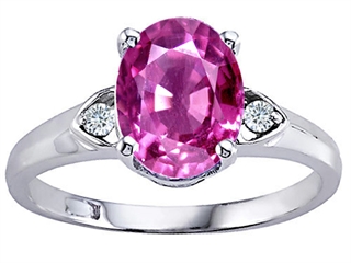 This beautiful Tommaso Design(tm) Oval 9x7mm Created Pink Sapphire and Genuine Diamond Ring, available in 14 kt White Gold and 14 kt Yellow Gold. This beautiful design is set with 1 stone prong set pink Oval Created Pink Sapphire, 2 stones prong set Round Brilliant Diamond K color I3 clarity. This design measures 7.00 mm wide, 9.00 mm long. Sapphire is September Birthstone: From the Latin 'sapphirus' meaning 'blue'. A symbol for truth and sincerity, it inspires spiritual enlightenment, health and inner peace. Diamond is April Birthstone: From the Greek 'adamas' meaning 'invincible'. A symbol of enduring love, it is believed to bring the wearer luck and success. Made in USA Designer: Tommaso design Studio - This classic design, is made by the renowned Tommaso Design Studio. Tommaso creations are copyrighted, so please be aware of cheap imitations selling online. Only original Tommaso designs are made using the highest quality materials and craftsmanship, backed by an exclusive Lifetime Warranty. Warranty: - This item is covered by Finejewelers exclusive Silver Shield Lifetime Warranty. This exclusive lifetime coverage is offered ONLY by Finejewelers so please shop with confidence, our quality is guaranteed for life!. Metal Available: 14 kt White Gold, 14 kt Yellow Gold.