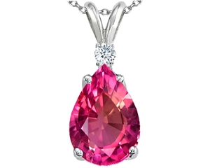 This dazzling Tommaso Design(tm) Pear Shape 9x7mm Created Pink Sapphire and Genuine Diamond Pendant, available in 14 kt Yellow Gold and 14 kt White Gold. This attractive design is set with 1 stone prong set pink Pear Shape Created Pink Sapphire eye clean clarity, 1 stone prong set Round Brilliant Diamond K color I3 clarity. This design measures 7.00 mm wide, 17.00 mm long. Sapphire is September Birthstone: From the Latin 'sapphirus' meaning 'blue'. A symbol for truth and sincerity, it inspires spiritual enlightenment, health and inner peace. Diamond is April Birthstone: From the Greek 'adamas' meaning 'invincible'. A symbol of enduring love, it is believed to bring the wearer luck and success. Free 18 inches chain included Designer: Tommaso design Studio - This classic design, is made by the renowned Tommaso Design Studio. Tommaso creations are copyrighted, so please be aware of cheap imitations selling online. Only original Tommaso designs are made using the highest quality materials and craftsmanship, backed by an exclusive Lifetime Warranty. Warranty: - This item is covered by Finejewelers exclusive Silver Shield Lifetime Warranty. This exclusive lifetime coverage is offered ONLY by Finejewelers so please shop with confidence, our quality is guaranteed for life!. Metal Available: 14 kt Yellow Gold, 14 kt White Gold.