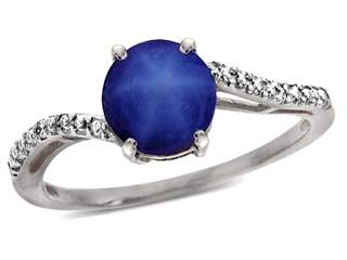 The dazzling Tommaso Design(tm) Round 7mm Created Star Sapphire and Diamonds Bypass Ring, available in 14 kt Yellow Gold and 14 kt White Gold. This amazing design is set with 1 stone prong set blue Round Created Star Sapphire, 2 stones prong set Round Brilliant Diamond K color I3 clarity. This design measures 7.00 mm wide, 7.00 mm long. Sapphire is September Birthstone: From the Latin 'sapphirus' meaning 'blue'. A symbol for truth and sincerity, it inspires spiritual enlightenment, health and inner peace. Diamond is April Birthstone: From the Greek 'adamas' meaning 'invincible'. A symbol of enduring love, it is believed to bring the wearer luck and success. Designer: Tommaso design Studio - This classic design, is made by the renowned Tommaso Design Studio. Tommaso creations are copyrighted, so please be aware of cheap imitations selling online. Only original Tommaso designs are made using the highest quality materials and craftsmanship, backed by an exclusive Lifetime Warranty. Warranty: - This item is covered by Finejewelers exclusive Silver Shield Lifetime Warranty. This exclusive lifetime coverage is offered ONLY by Finejewelers so please shop with confidence, our quality is guaranteed for life!. Metal Available: 14 kt Yellow Gold, 14 kt White Gold.