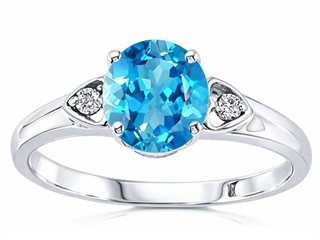 Genuine Round Blue Topaz and Diamond Engagement Ring crafted in 14 kt White Gold 1 Stone 1.35 Carats 14k Gold Round Blue Topaz Ring Color: Medium Blue Clarity: Clean, 2 Stones 0.04 Carats Round Diamonds Color: I Clarity: SI Dimensions: Width: 7.00 mm Length: 7.00 mm.
