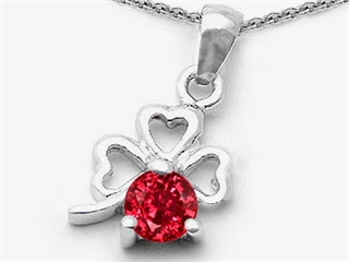 The amazing Celtic Love by Kelly Round Created Ruby Lucky Clover Pendant, crafted in 925 Sterling Silver. This beautiful design is set with 1 stone prong set red Round Created Ruby. This style measures 11.00 mm wide, 20.00 mm long. Ruby is July Birthstone: From the Latin 'ruber' meaning 'red'. King of gems and a symbol of royalty, it is said to inspire love, passion, confidence and leadership. Warranty: - This item is covered by Finejewelers exclusive Silver Shield Lifetime Warranty. This exclusive lifetime coverage is offered ONLY by Finejewelers so please shop with confidence, our quality is guaranteed for life!