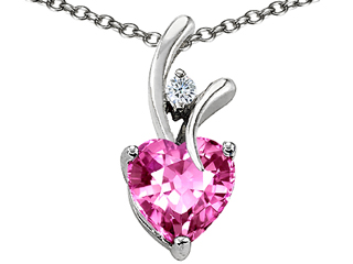 The beautiful Original Star K(tm) Heart Shaped 8mm Created Pink Sapphire Pendant, crafted in .925 Sterling Silver. This beautiful design is mounted with 1 stone prong set pink Heart Shape Created Pink Sapphire, 1 stone prong set colorless Round Cubic Zirconia. This product measures 8.00 mm wide, 18.00 mm long. Sapphire is September Birthstone: From the Latin 'sapphirus' meaning 'blue'. A symbol for truth and sincerity, it inspires spiritual enlightenment, health and inner peace. Free 18 inches chain included Designer: Star K - This beautiful design, is part of the exclusive Star K. jewelry collection. Star K. designs are copyrighted, so please be aware of cheap imitations selling online. Only original Star K. creations are made using the highest quality materials and craftsmanship, backed by an exclusive Lifetime Warranty. Warranty: - This item is covered by Finejewelers exclusive Silver Shield Lifetime Warranty. This exclusive lifetime coverage is offered ONLY by Finejewelers so please shop with confidence, our quality is guaranteed for life!