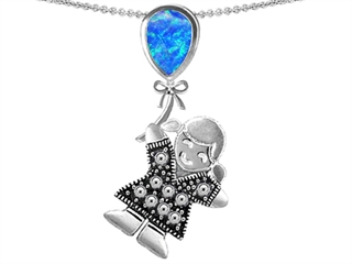 The impressing Original Star K(tm) Little Girl Holding a Balloon Mother Birthstone Created Blue Opal Pendant, crafted in 925 Sterling Silver. This beautiful design is mounted with 1 stone prong set blue green iridescent Pear Shape Created Opal. This product measures 18.00 mm wide, 32.00 mm long. Opal is October Birthstone: From the Greek 'opallios', meaning 'colour change'. A symbol of hope and faithfulness, it inspires true love and brings confidence. Designer: Star K - This beautiful design, is part of the exclusive Star K. jewelry collection. Star K. designs are copyrighted, so please be aware of cheap imitations selling online. Only original Star K. creations are made using the highest quality materials and craftsmanship, backed by an exclusive Lifetime Warranty. Warranty: - This item is covered by Finejewelers exclusive Silver Shield Lifetime Warranty. This exclusive lifetime coverage is offered ONLY by Finejewelers so please shop with confidence, our quality is guaranteed for life!